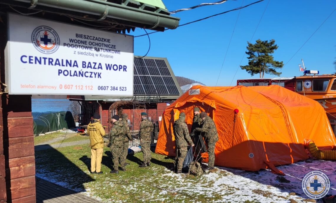 W naszej Bazie Centralnej w Polańczyku gościliśmy żołnierzy i kadrę oficerską Wojskowej Akademii Technicznej w Warszawie. Przeprowadziliśmy dla nich, w ramach wewnętrznego szkolenia poligonowego, ćwiczenia z zakresu podejmowania z wody osób poszkodowanych, wykorzystania specjalistycznego sprzętu ratownictwa wodnego, działania zespołowego w strefie zagrożenia, zasad asekuracji ratowników oraz radzenia sobie z hipotermią. Dziękujemy IONIC Rescue Polska i Kadimex za udostępnienie sprzętu. Istotnym wsparciem podczas szkolenia była ekipa z Państwowej Straży Pożarnej.